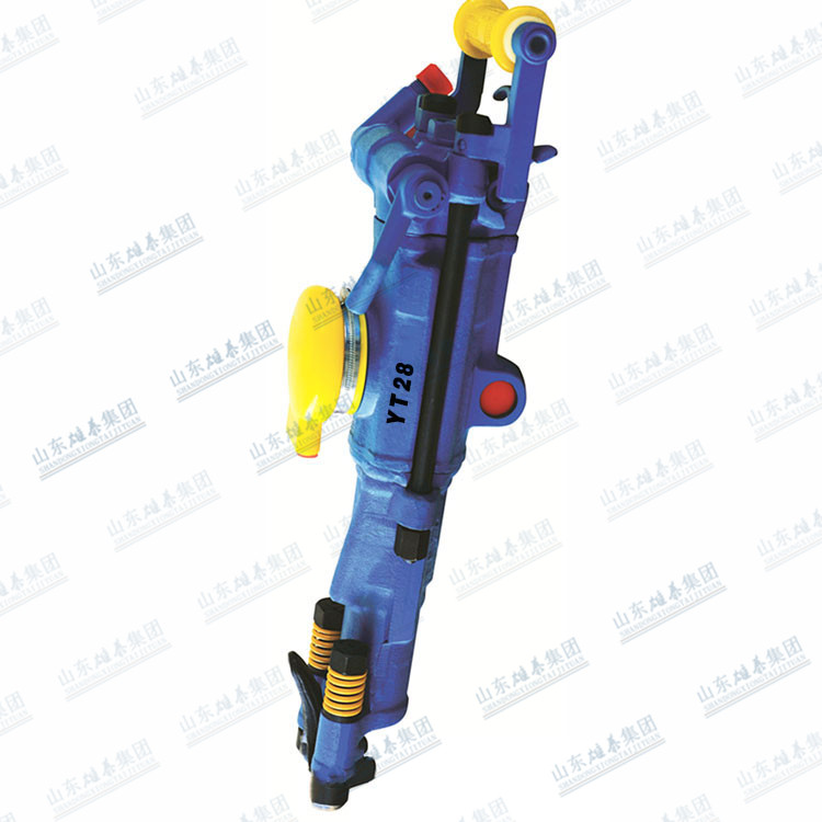 YT28型氣腿式鑿巖機(jī),是一種新型的鑿巖機(jī)械。它廣泛應(yīng)用于采石、開礦、巷道掘進(jìn)以及各種鑿巖作業(yè)中鉆鑿爆破孔,是礦山、水利、建材、能源、交通、軍工及地質(zhì)工程中不可缺少的重要機(jī)具。YT28型鑿巖機(jī)適宜于在中硬或堅(jiān)硬(f=8~18)的巖石上鉆鑿水平、傾斜和垂直炮孔,炮孔直徑一般為34~42毫米,有效經(jīng)濟(jì)鉆深可達(dá)5米。既可與本公司的FT160型氣腿配套使用,也可裝在鉆車或臺(tái)架上工作。本機(jī)配有FY200A型注油器,以保證良好的潤(rùn)滑。