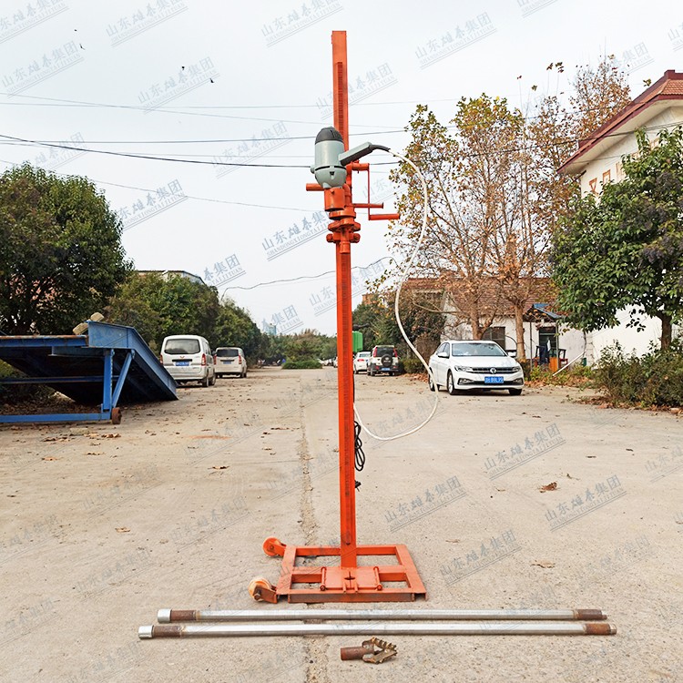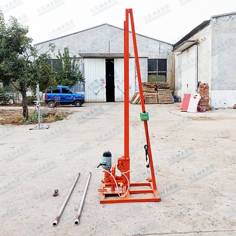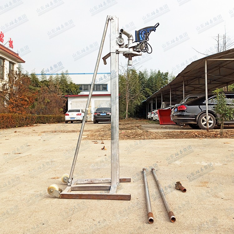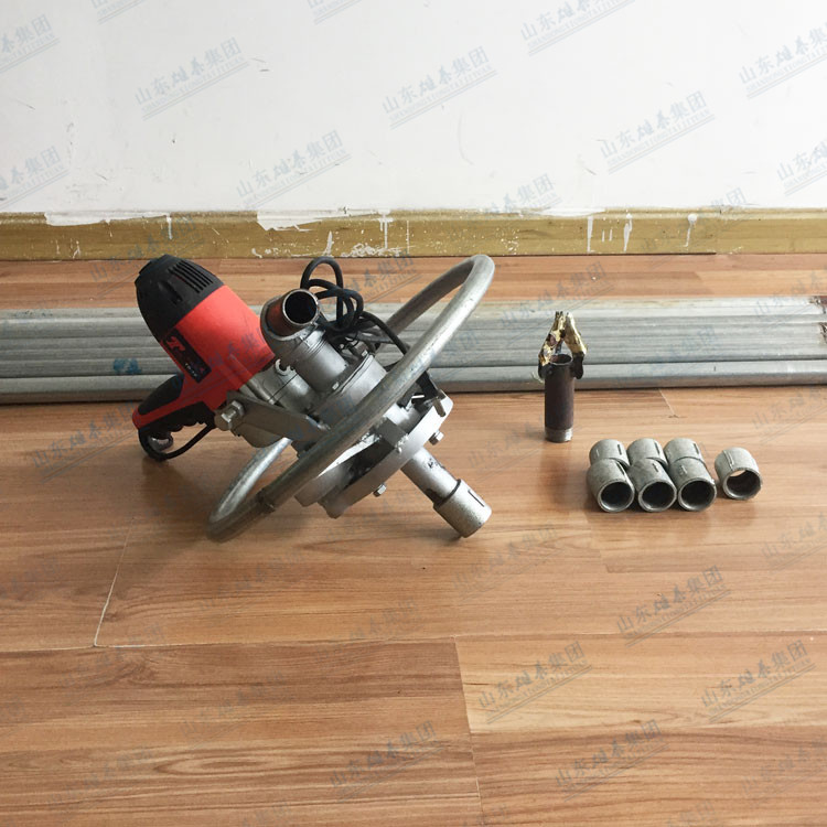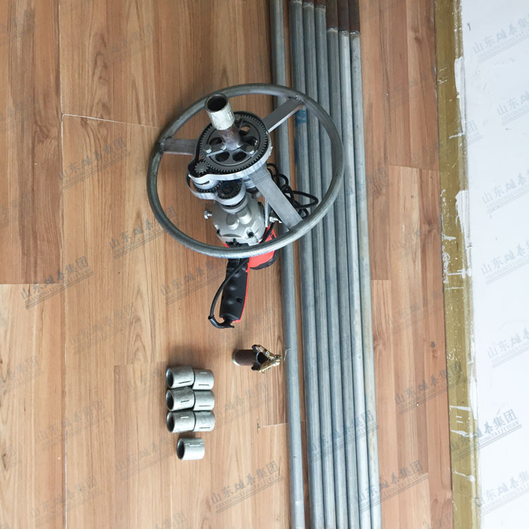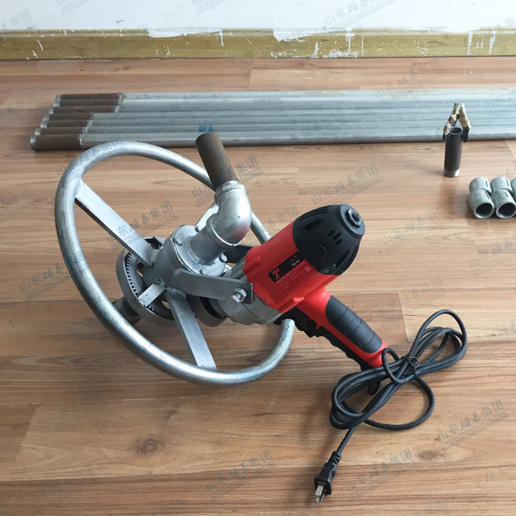 本款打井機采用了多齒輪設計,雖然增加了生產(chǎn)成本和制造工藝,但這樣設計增加了打井機力量(就像汽車一檔比四檔有力、還便于掌握一樣的道理),打井有力,打井速度快、便于掌握。如果齒輪少了,一千瓦的電機還沒有七百多瓦的電機力量大、而且轉速高、打井時難于掌握。這款多齒輪結構鉆井機經(jīng)過許多用戶多年使用,打井效果非常理想!便攜式小型民用電動打井機廣泛應用于家庭/工廠生活用水打井、農(nóng)田灌溉水井、安裝水空調、工地打樁等。本公司生產(chǎn)的便攜式小型民用電動打井機機頭,可隨意選配鉆頭,鉆頭價格另算。也可另配鉆桿,鉆桿直徑是32mm、一根長約1.5米。