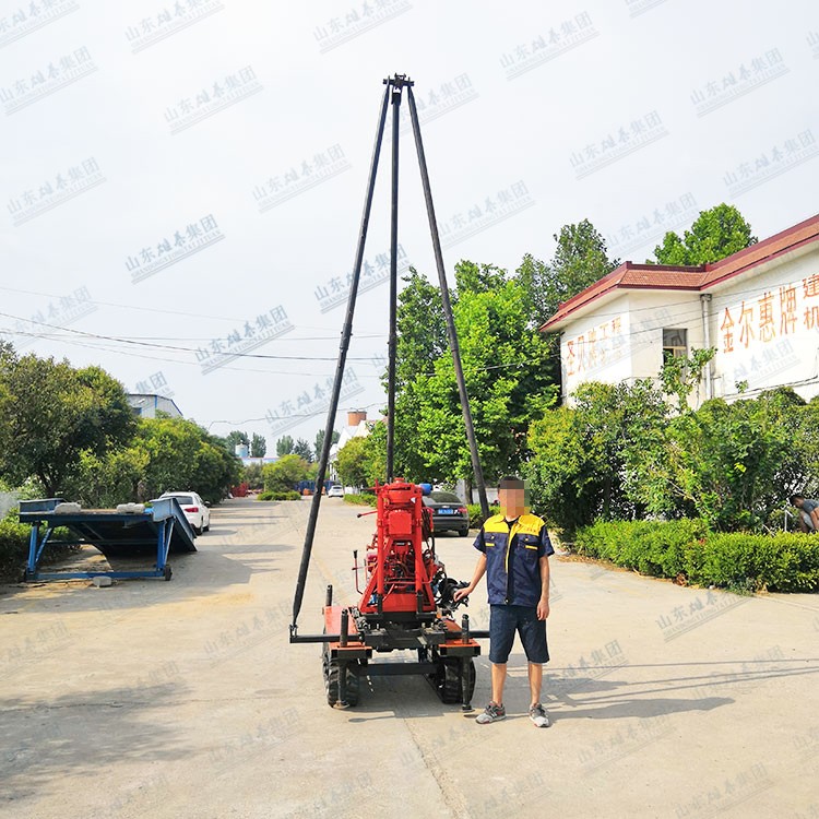 我廠生產(chǎn)的BZ-50SL型鉆機(jī),是在50系列鉆機(jī)的基礎(chǔ)上升級(jí)改造的,解決了傳統(tǒng)小型液壓鉆機(jī)鉆桿短,鉆進(jìn)時(shí)需要反復(fù)提鉆下鉆的作業(yè)模式,該機(jī)型新增了履帶底盤,減輕了用戶的轉(zhuǎn)場(chǎng)負(fù)擔(dān),提高了作業(yè)效率,鉆桿取芯鉆具等放在底盤上,發(fā)動(dòng)機(jī)器就可以轉(zhuǎn)場(chǎng)了,同時(shí)增加了移機(jī)功能,鉆桿長(zhǎng)度達(dá)到2米,鉆塔高度4.5米,精簡(jiǎn)了作業(yè)流程,換桿不需要拆卸牛頭,提升了鉆進(jìn)速度。